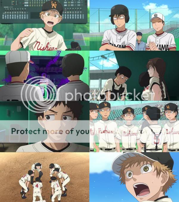 與港南高中的對決西浦再度得勝,延續著上回三橋的不安依舊持續著,阿部也同樣是嘮叨個不停,怕三橋拿重物傷到手而出聲大吼,真是讓人費解的愛情表現呢┐(´ー`)┌(?)